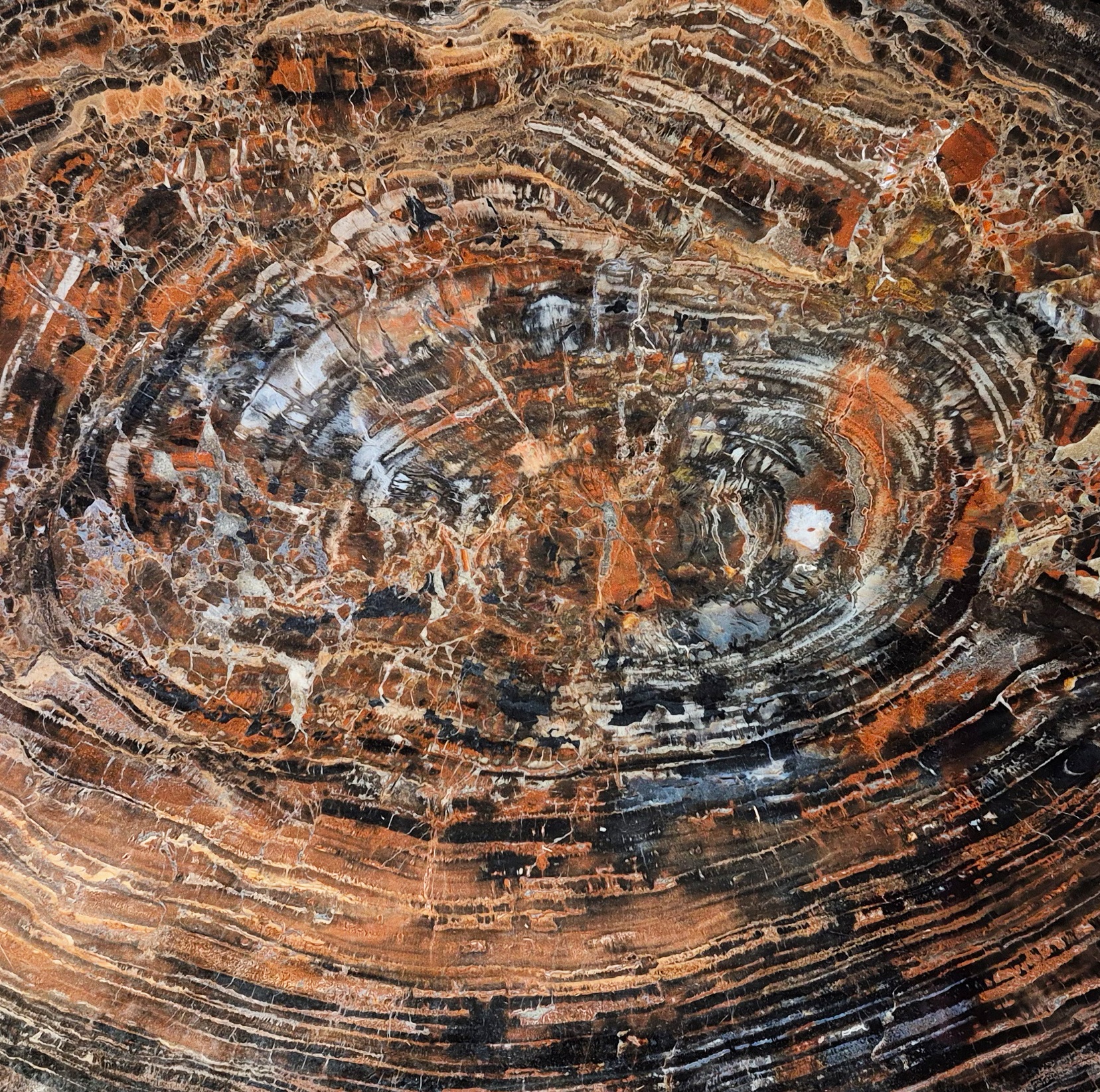 Silica- and iron-rich waters slowly permeated the buried wood, replacing its organic fibers with quartz while preserving its internal structure. This process created a velvety palette of molten gold, deep umber, and soft charcoal, subtly balanced by pale beige and grey undertones. Fossilized growth rings and delicate mineral veins remain visible beneath the polished surface, offering a quiet rhythm and sense of movement.