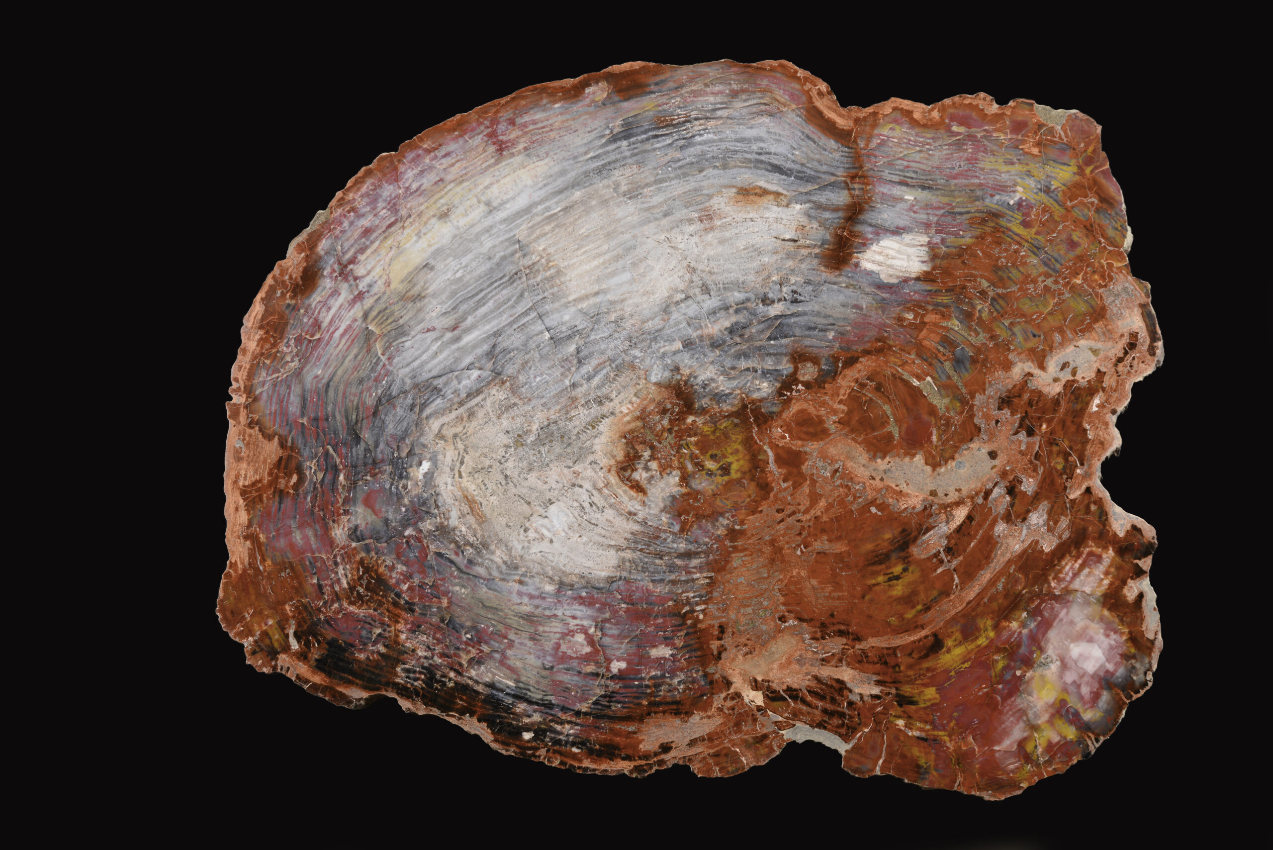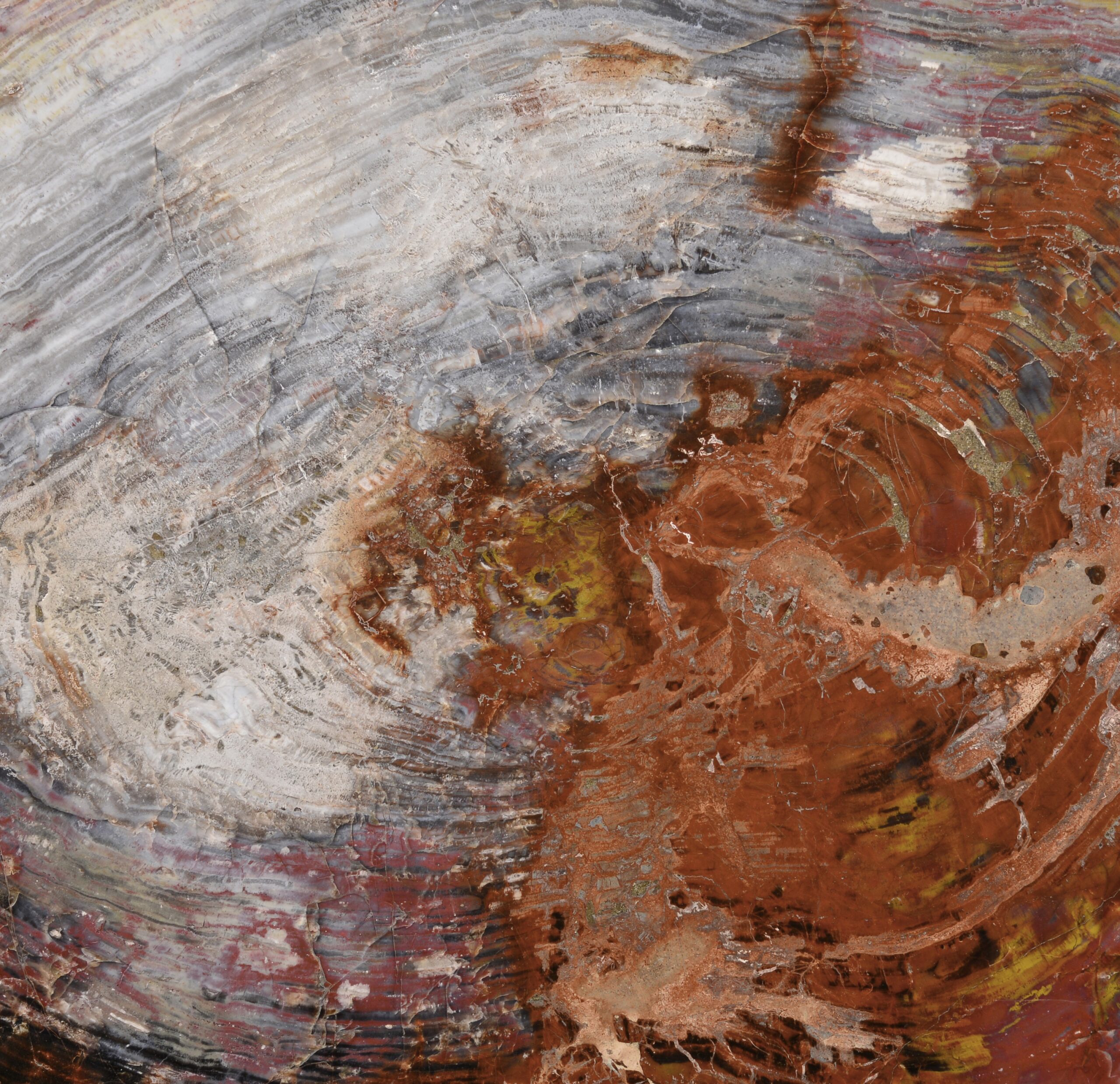 Grand yet composed, this 37-by-46-inch petrified wood round from the Dobell Ranch expresses both strength and elegance. Once a majestic Araucarioxylon pine, it has journeyed across more than 220 million years of geological history, its organic structure transformed into enduring stone while preserving every nuance of its ancient life.