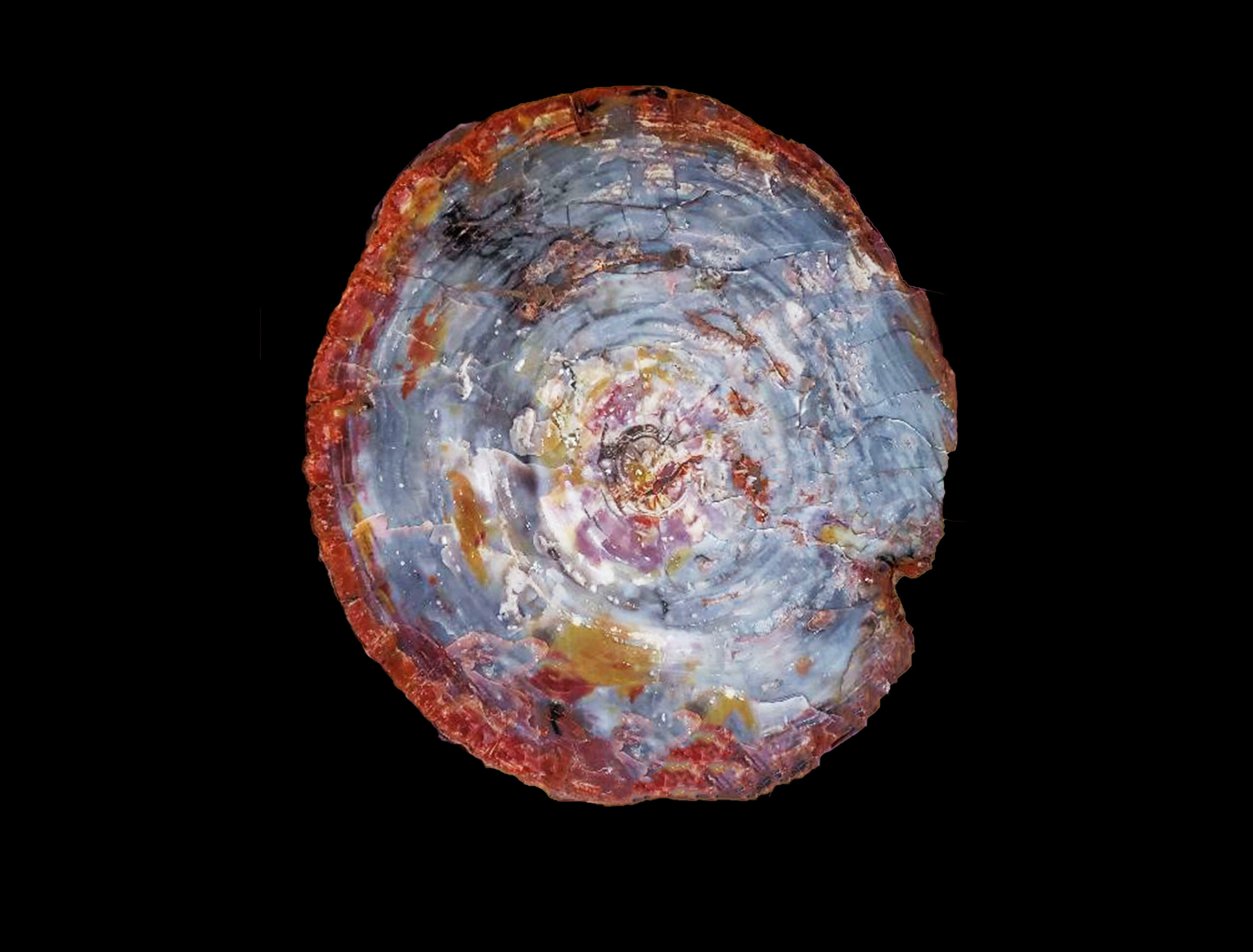 Serene and finely balanced, this petrified wood round from the Milky Ranch offers a graceful expression of form and color shaped by time. Excavated in 1998, this specimen originated from an ancient Araucarioxylon pine, transformed over 220 million years into stone of remarkable clarity and depth.